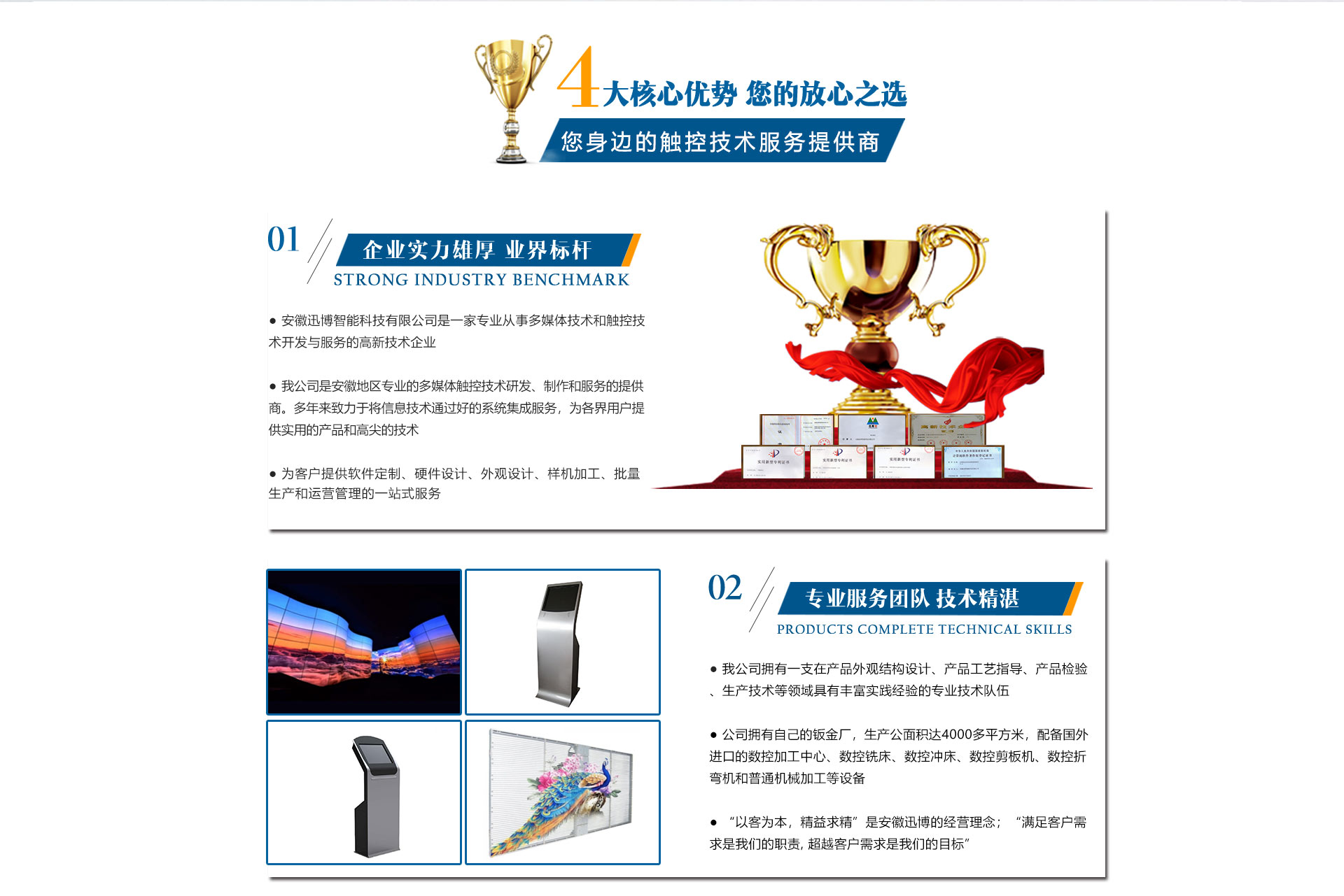 迅博科技 位于中國科教城---合肥市,地處合肥市肥西縣湯口路與皋城路交口西北角人民萬福產業園一期12棟,是一家計算機信息領域的高新技術企業公司,全心全意服務于信息化建設,做信息化提供商,全力打造信息時代新模式。引進了現代企業管理模式和完善的競爭、激勵機智,既具備國有企業的信譽,又兼備努力拼搏、一致向上的精神。迅博科技 擁有多項軟件著作權證書和多項硬件技術證書同時也是一家高新技術企業,注冊資本達500萬,辦公面積近1500平米,同時有合資在杭州成立自己的4000多平米的鈑金廠,公司擁有一支實力、富有經驗的計算機和信息技術隊伍和市場營銷隊伍,技術人員都有很強的背景和豐富的實踐經驗。一貫注重與...